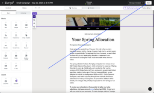 The next screen in the wizard is where you build your email template. Choose a template from the template library by just clicking on it from the ‘Email: saved’ section.