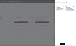 • The ‘Send now’ feature has no additional fields. To send immediately, click the 'Send now' button in the bottom right corner.