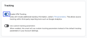 • Below the Audience section, you'll find the Tracking section. Here, you can enable UTM Tracking to add UTM parameters to your links.