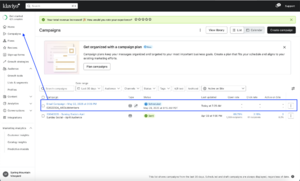 To verify successful campaign creation, navigate to the 'Campaigns' section; your campaign should now be visible in the Campaigns view.